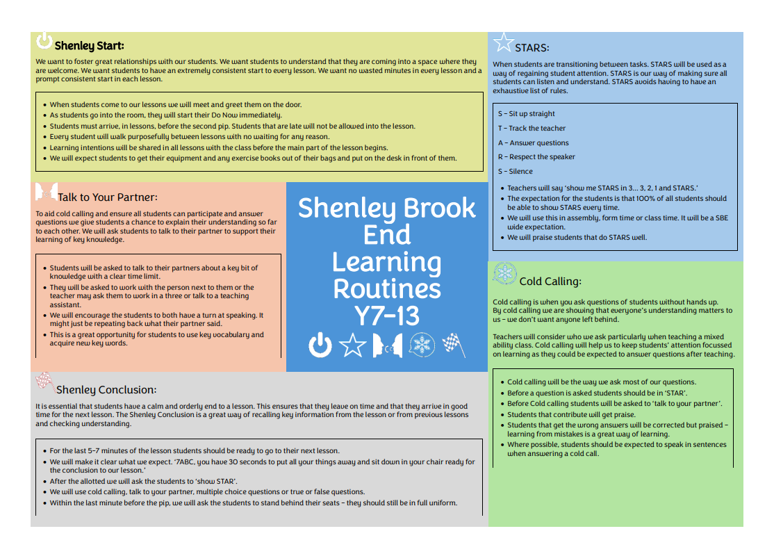 We were excited to announce the launch of our new Shenley Way Learning Routines, which were introduced into classrooms at the start of the academic year – September 2025.